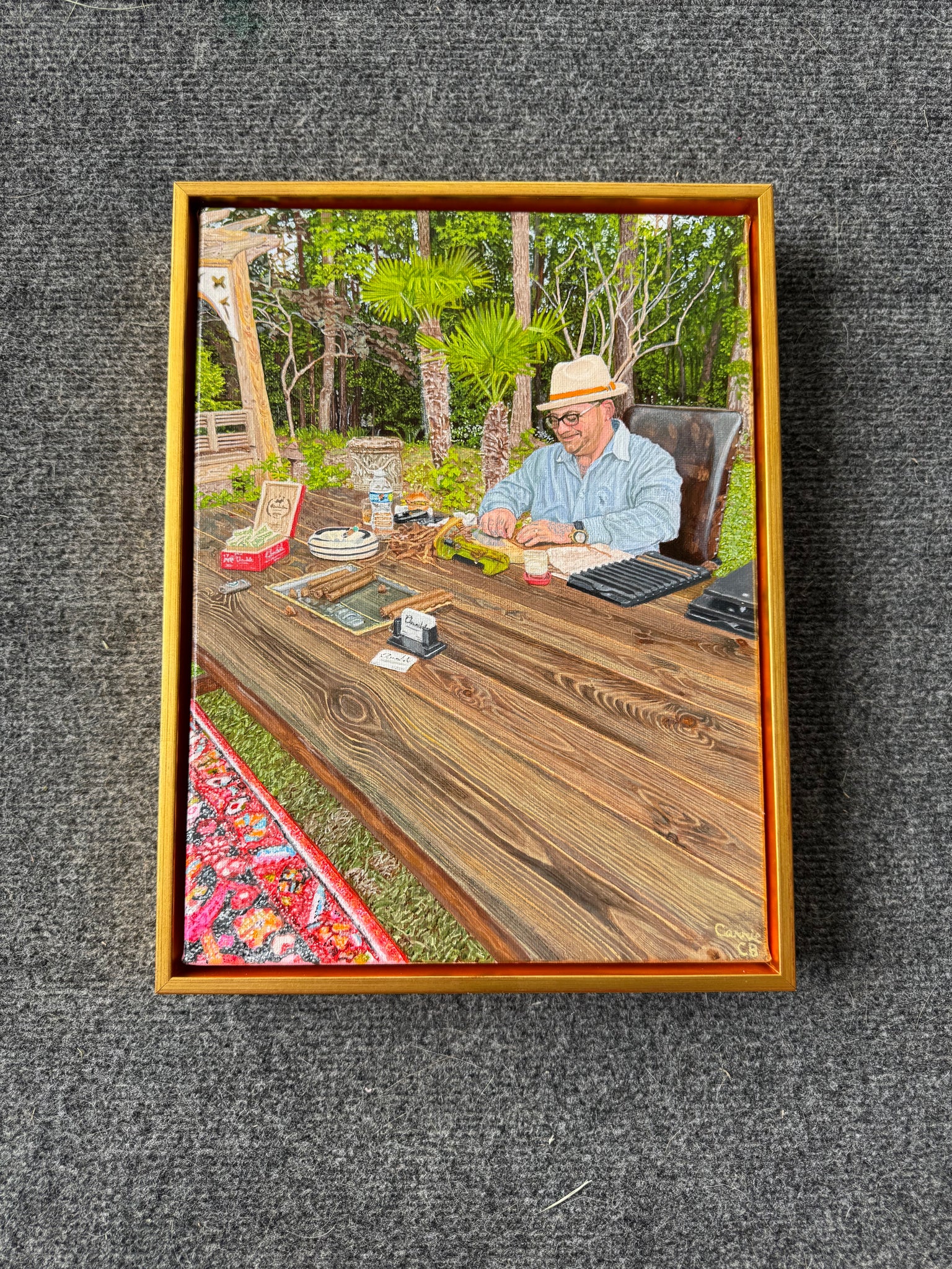 Professionally framed in a gold floater frame